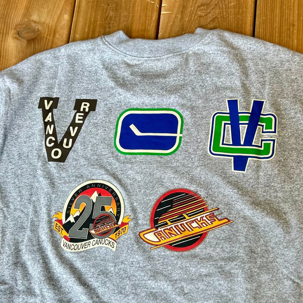 Rep your team's history in style in this Vancouver Canucks tee featuring the team's historical logos.