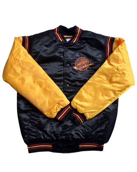 Bure, Linden, McLean... Evoke memories of your favourite Canucks era in this early 90s-style satin Starter jacket. Whether it's game night or you're headed out to town, you are sure to stand out as a true Vancouver Canucks fan!